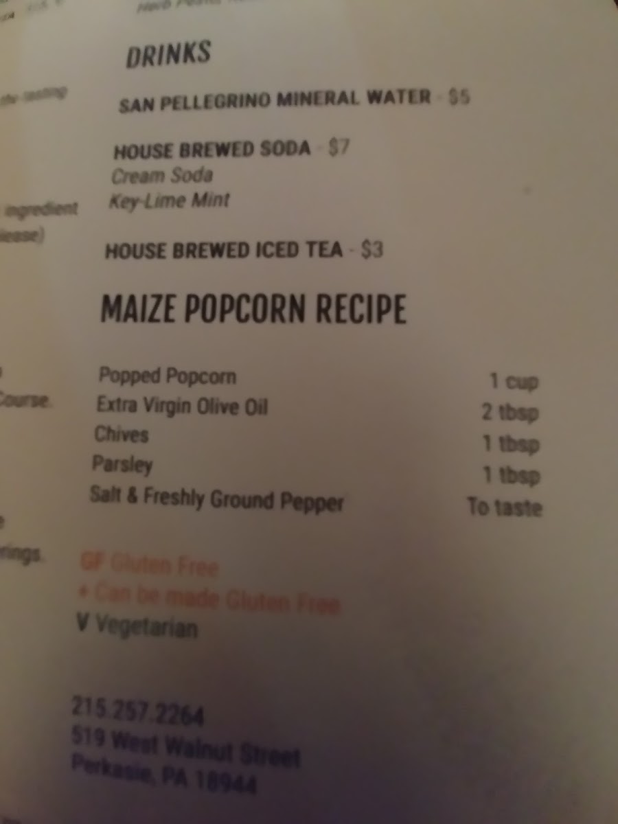 Welcome to Maize Restaurant, a culinary gem located at 519 W Walnut St, Perkasie, PA. Maize offers an exquisite dining experience through thoughtfully curated tasting menus that change daily. The 4-Course Tasting Menu, priced at $90, features a delightful selection of seafood, meat, a chef's choice course, and dessert. For the true epicurean, the 8-Course Tasting Menu at $145 showcases an array of 6 shellfish, fish, and vegetarian courses, culminating in a decadent cheese plate and dessert.